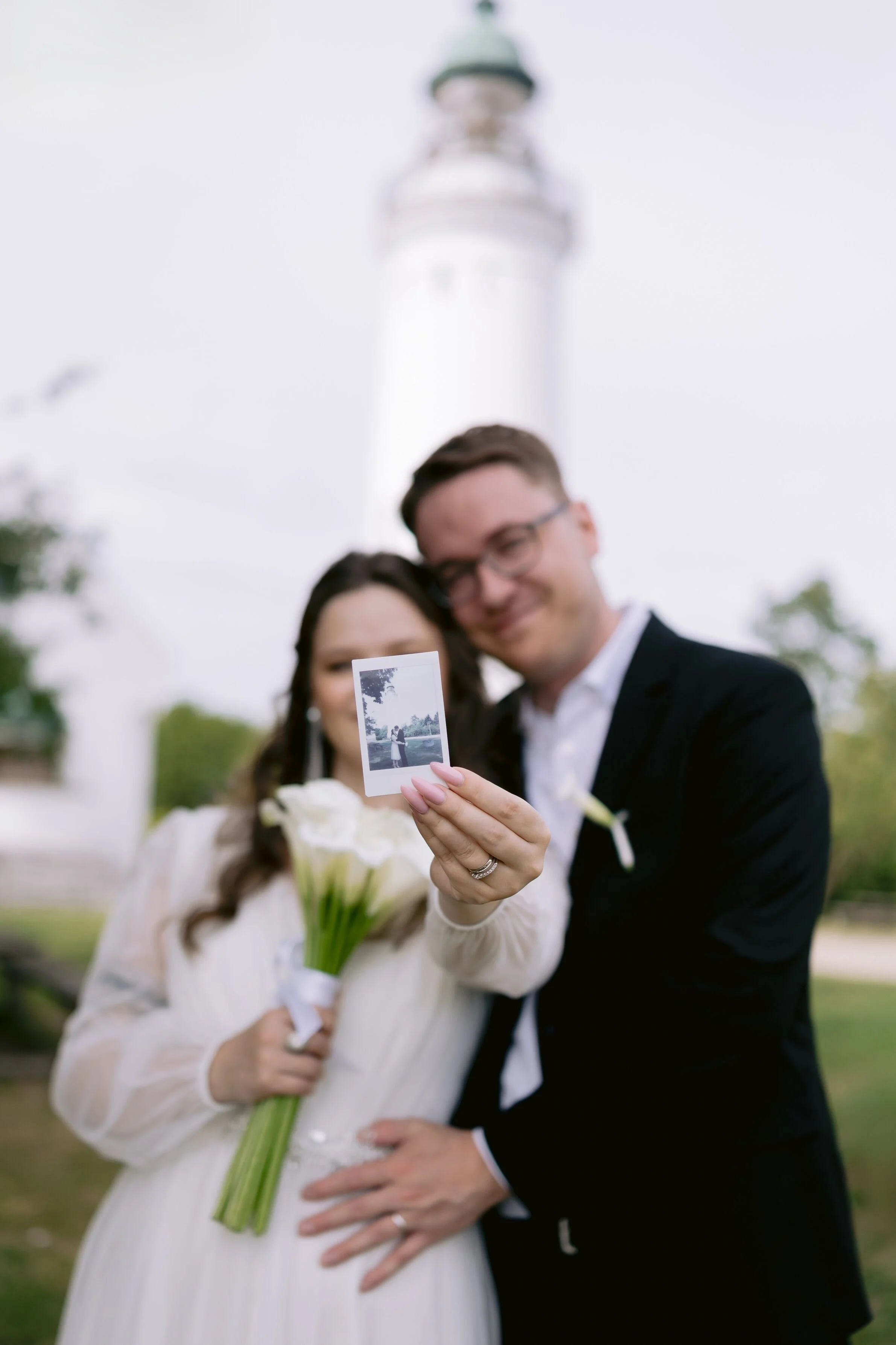 Afterwards, welcome champagne was served inside the lighthouse, arranged by their wedding planner Sara — a really nice touch that gave everyone a moment to breathe and take it all in. The couple took polaroid photos with their guests, shared a piece of cake, and then headed outside for group shots. Sara's decorations throughout were thoughtful and personal, the kind that make a space feel like it was put together with care rather than just ticked off a checklist. If you would rather hand the planning over to someone who knows this venue well, you can read more about her wedding services here. V + K’s wedding story is down below.