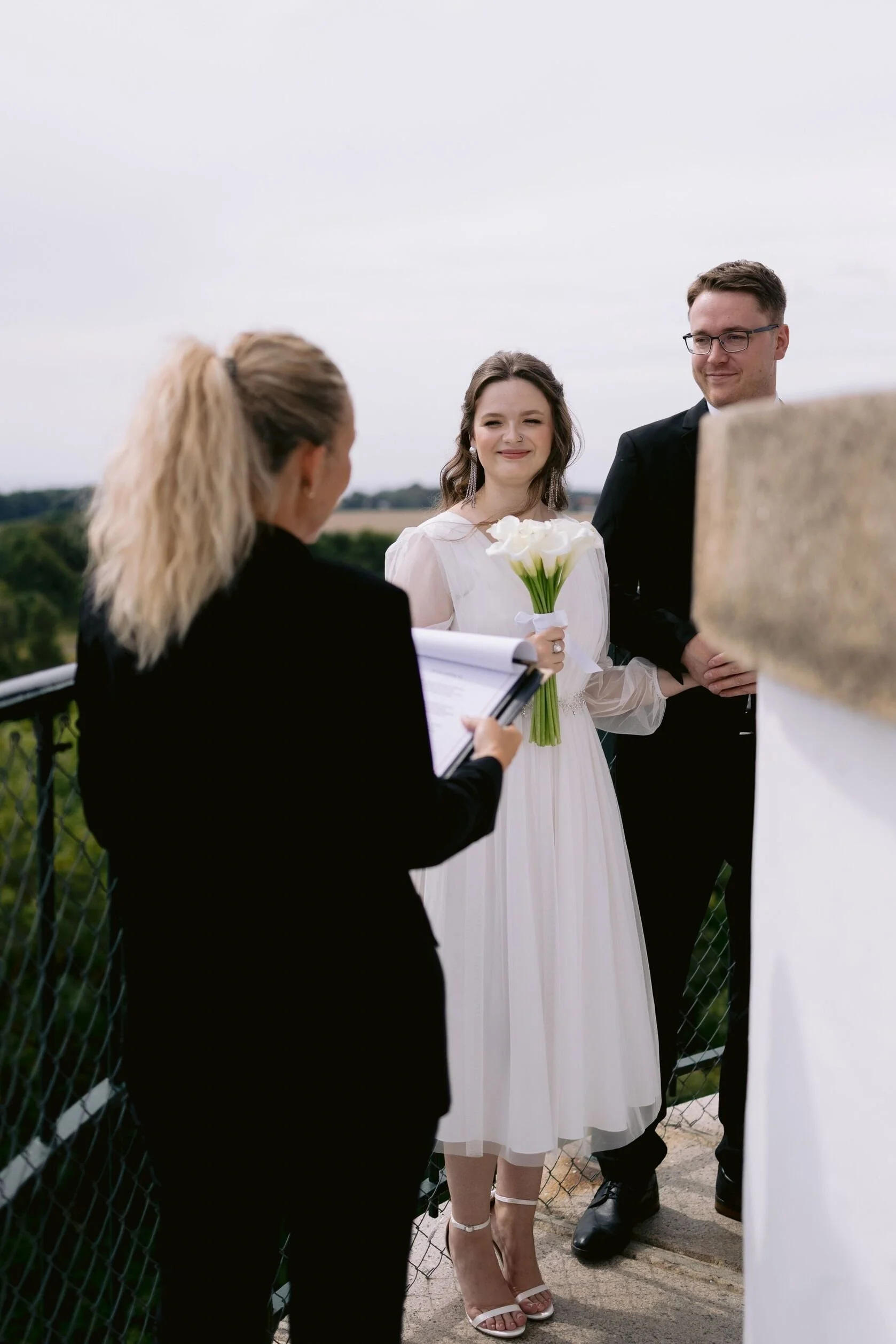 Worth knowing is that wind can occasionally move the ceremony indoors — on particularly blustery days, the exchange of vows happens next to the lighthouse (or the nearby house) rather than at the top. Veronika and Kai were lucky. Their Friday was calm and still, the ceremony stayed outside, and the whole thing unfolded exactly as you would hope.