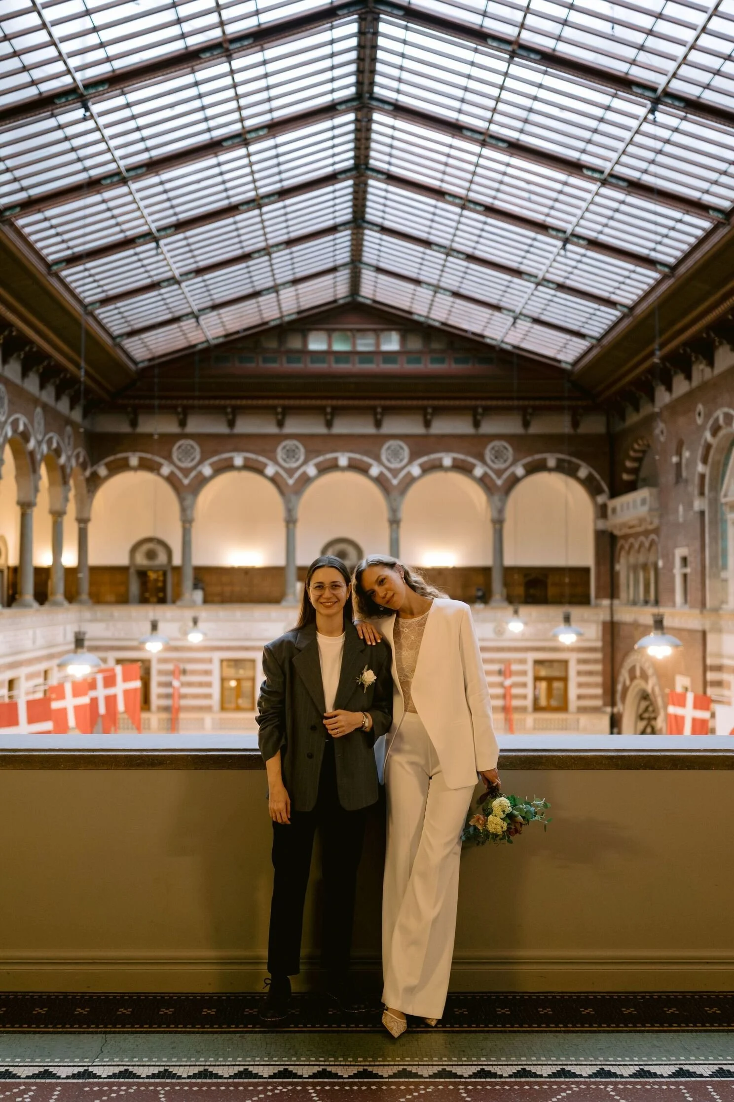 The two flew in from Israel just for this — making it official in one of Copenhagen's most recognisable buildings, with the city as their backdrop and nobody else's schedule to worry about. Their time inside was briefer than planned, as the venue was preparing for a major event that day and the ground floor was closed to wedding couples. It meant we had to keep things moving, but the energy between them was so warm and easy that it barely registered as a complication.