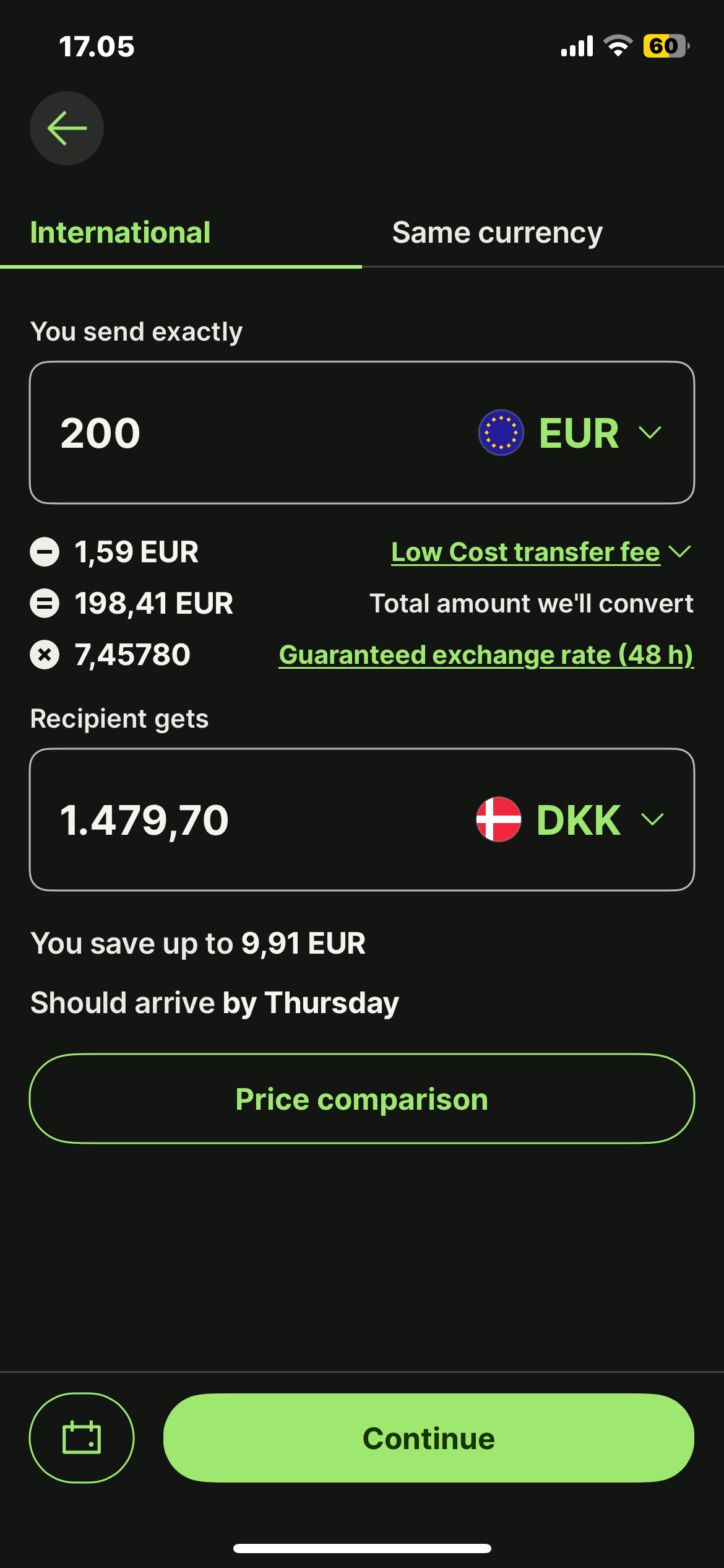 Moreover, upon opening your account, you're eligible for a fee-free transfer up to 4000 DKK (approximately €500) if using this link. Why not to give it a go?