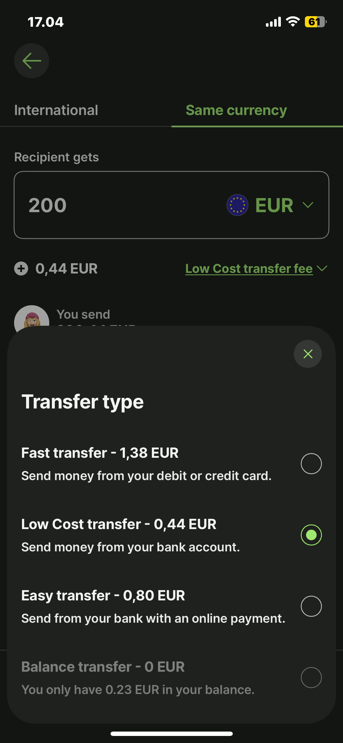 To send money through Wise, you need an account. You can opt for either a low-cost, easy transfer or a fast transfer. If your Wise account holds a balance, the transfer is free of charge.